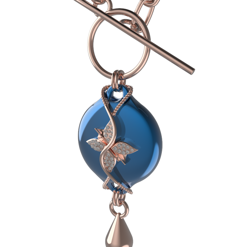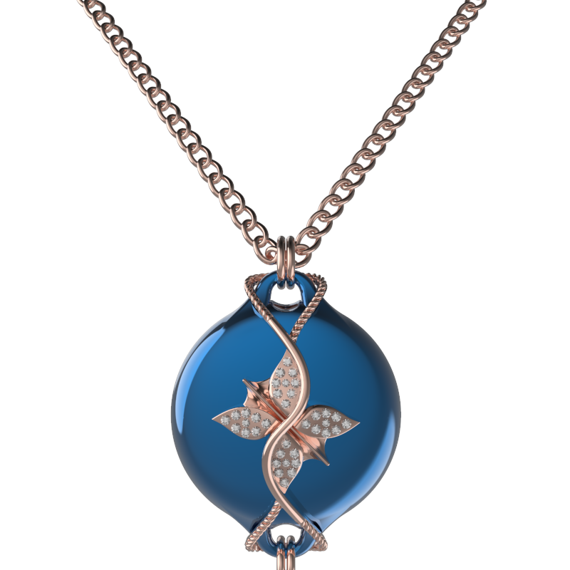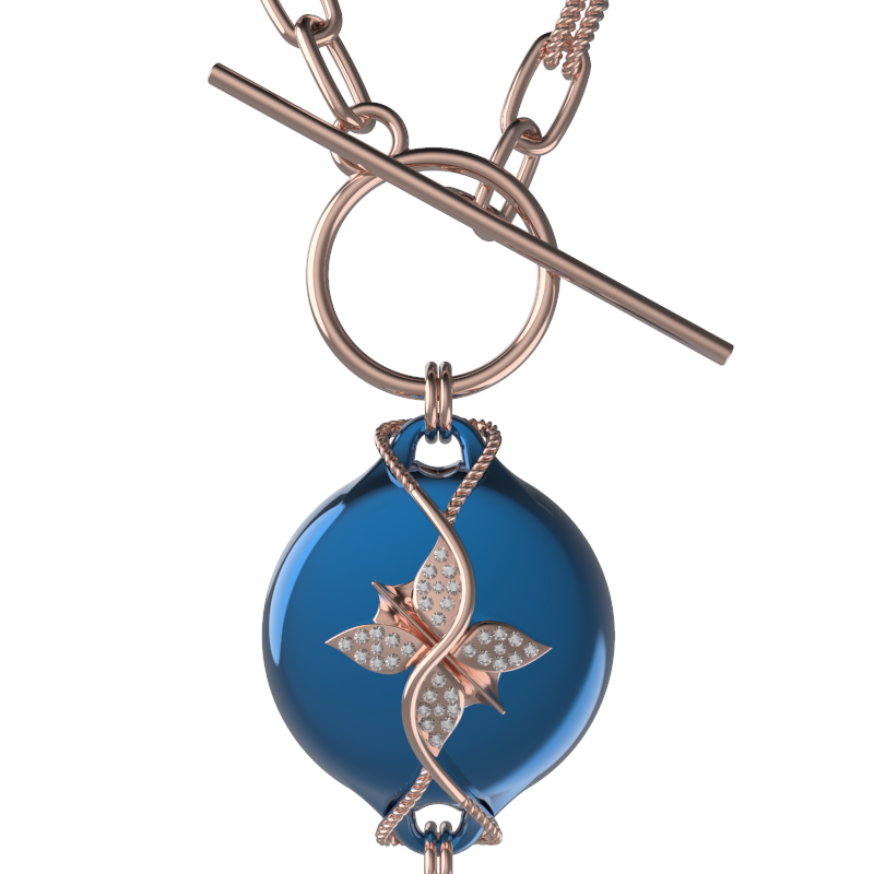 Mahi Safety Necklace - Blue on Rose, Wheat Chain
