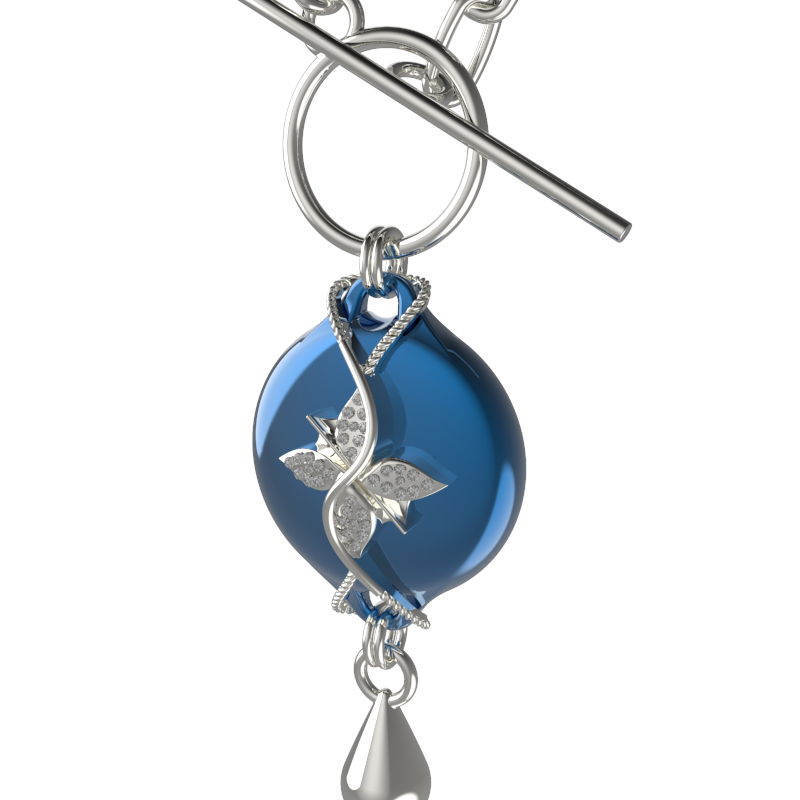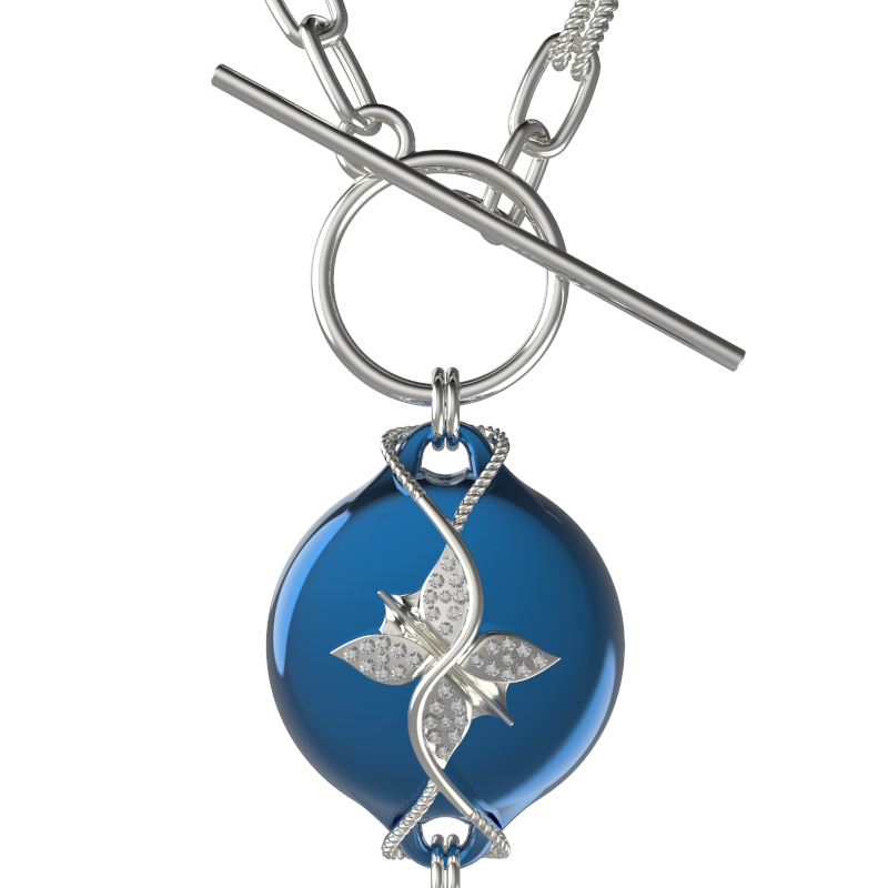 Mahi Safety Necklace - Blue on Silver, Wheat Chain