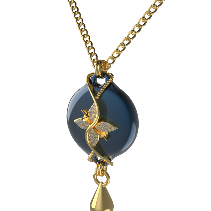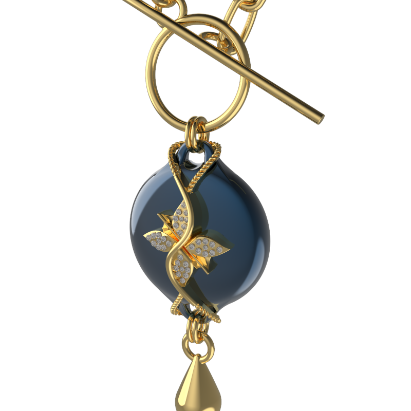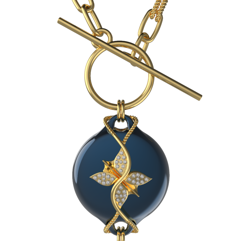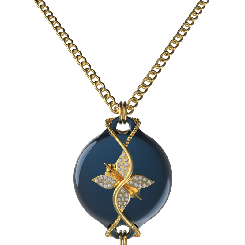 Mahi Safety Necklace - Dark blue (Murin) on Gold, Wheat Chain