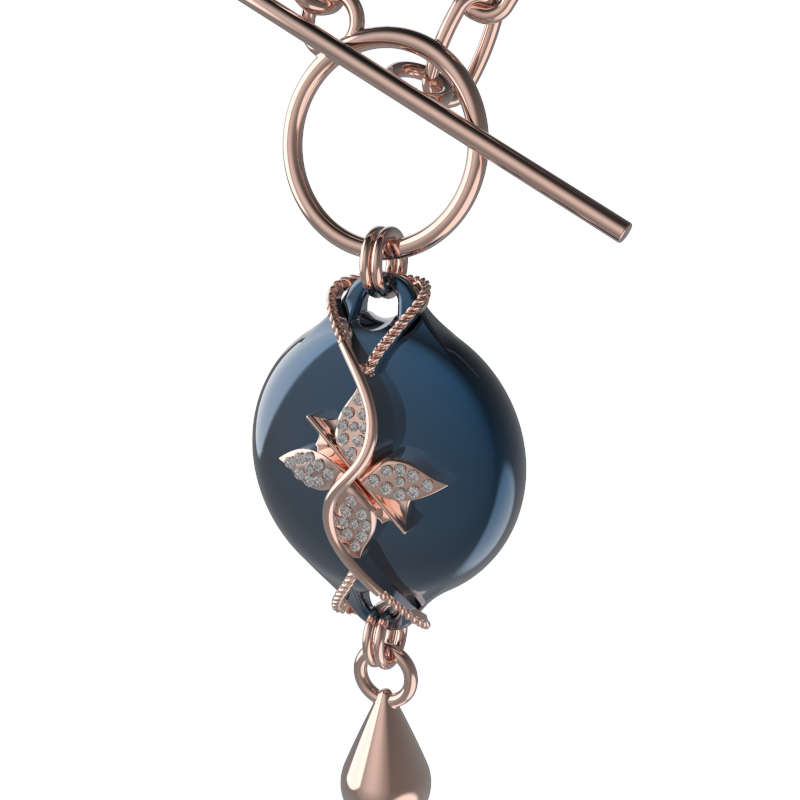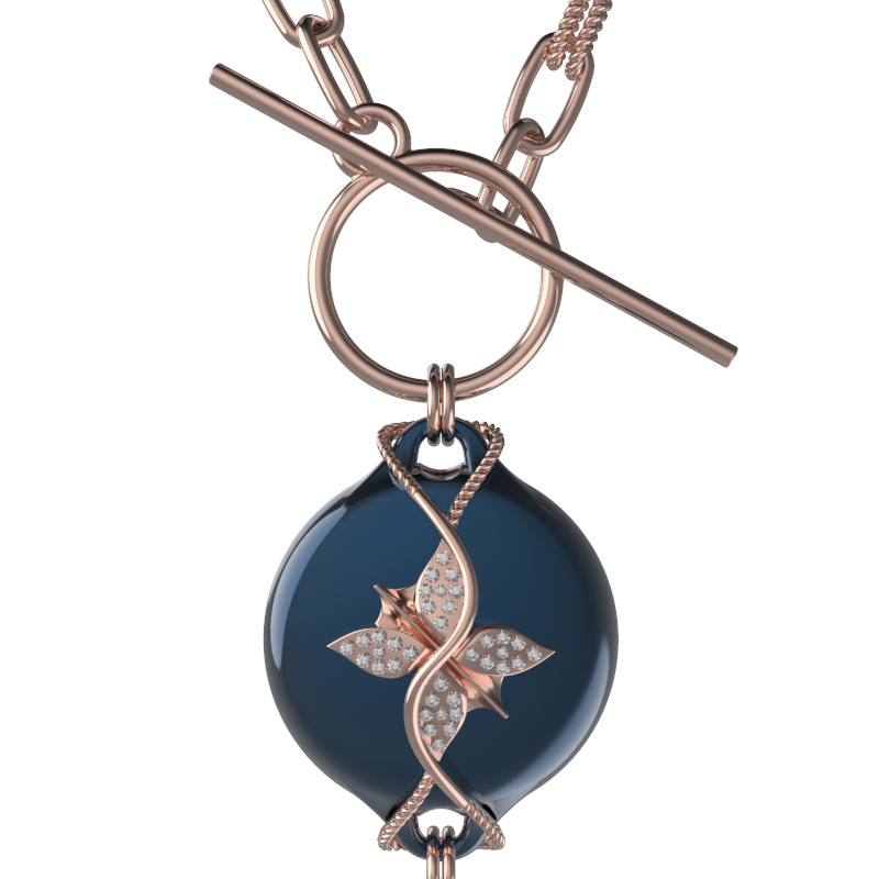 Mahi Safety Necklace - Dark Blue (Murin) on Rose, Paperclip Chain