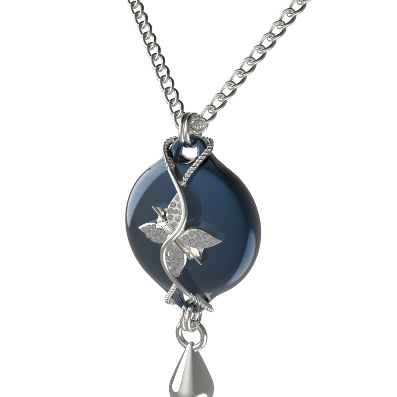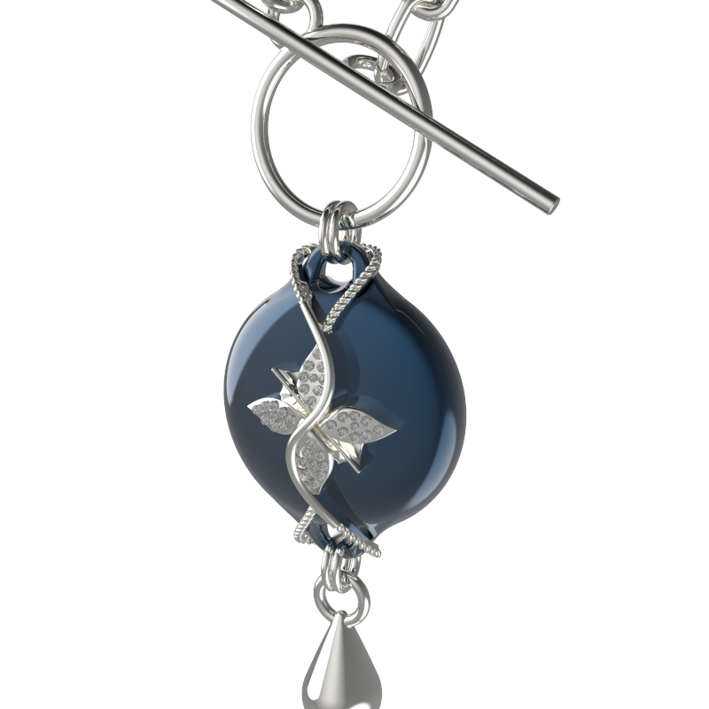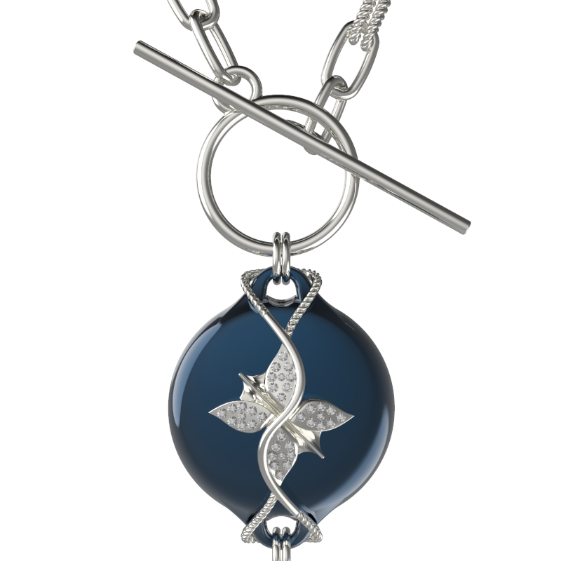 Mahi Safety Necklace - Dark Blue (murin) on Silver, Wheat Chain