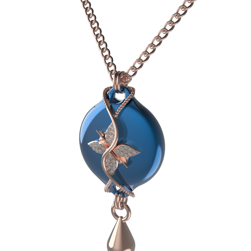 Mahi Safety Necklace - Dark Blue (Murin) on Rose, Wheat Chain