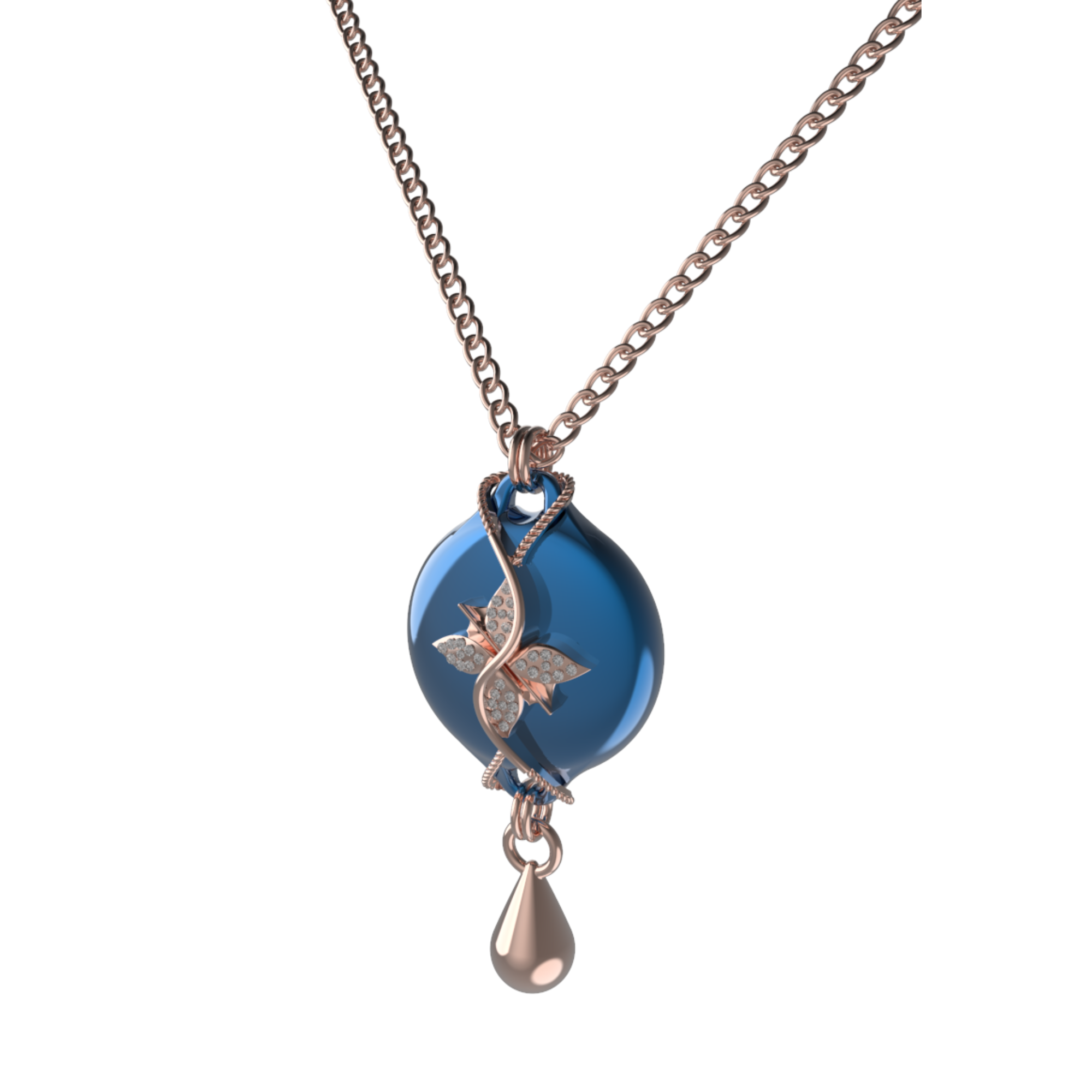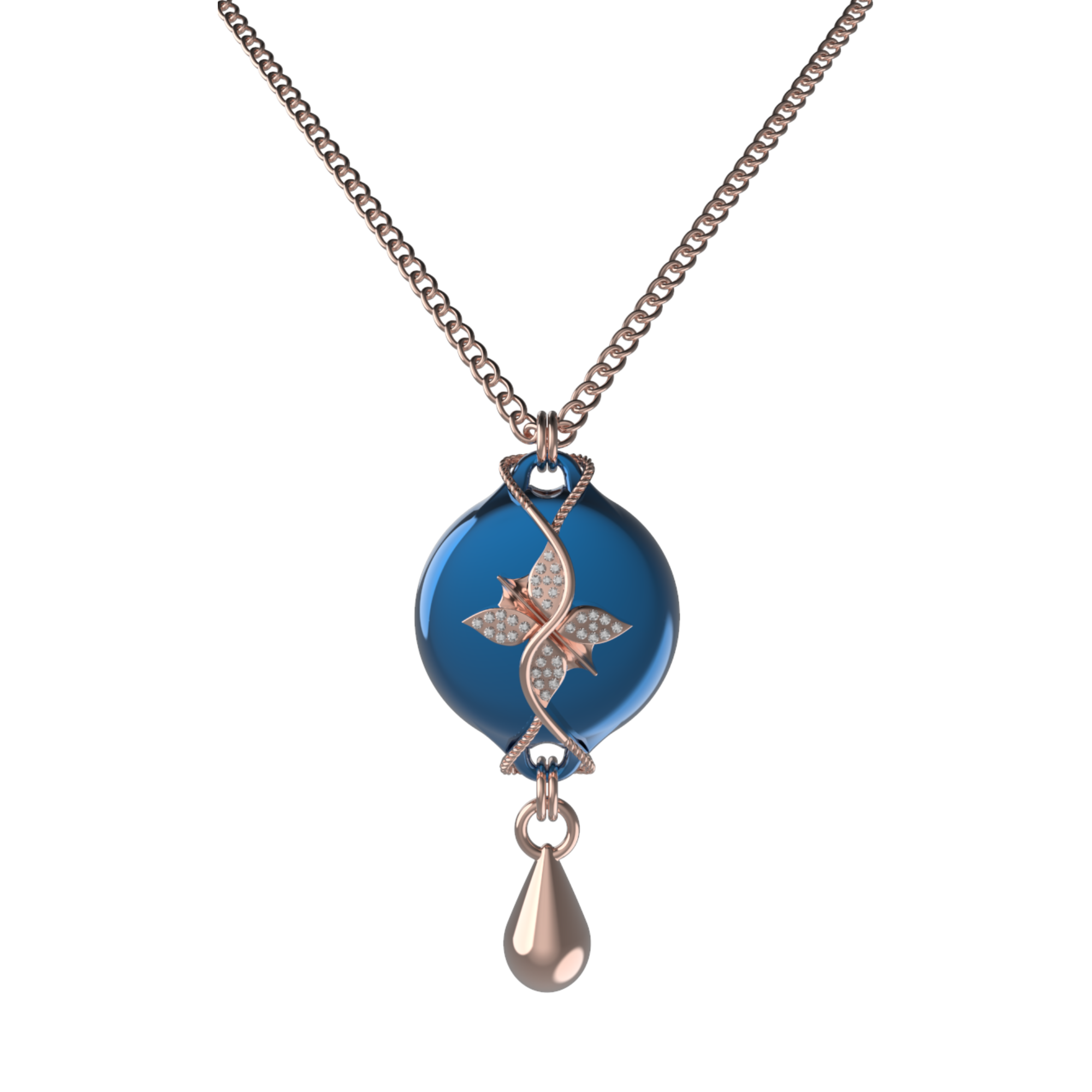 Mahi Safety Necklace - Rose Gold on Blue, Wheat Chain