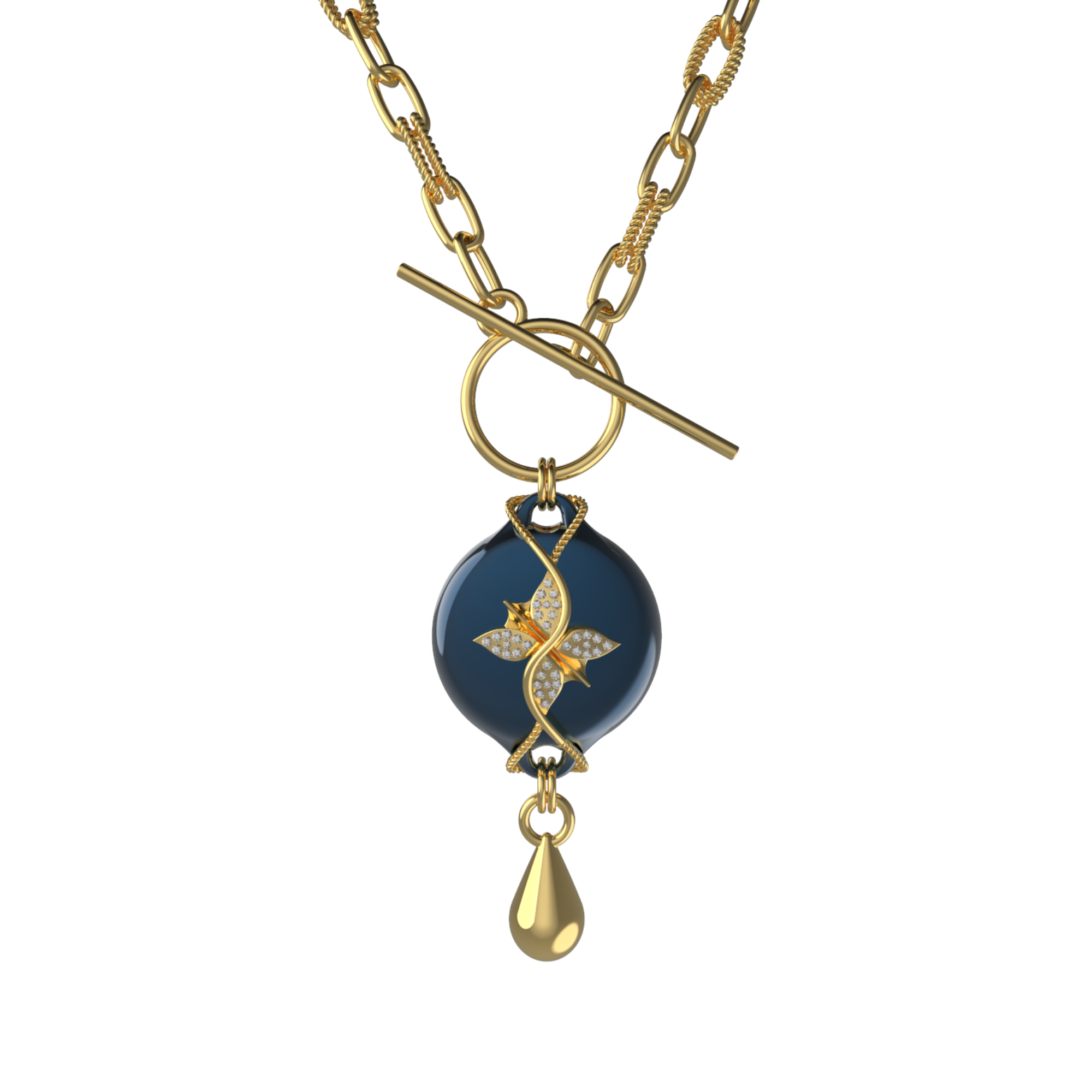 Mahi Safety Necklace - Gold on Dark blue (Murin), Wheat Chain