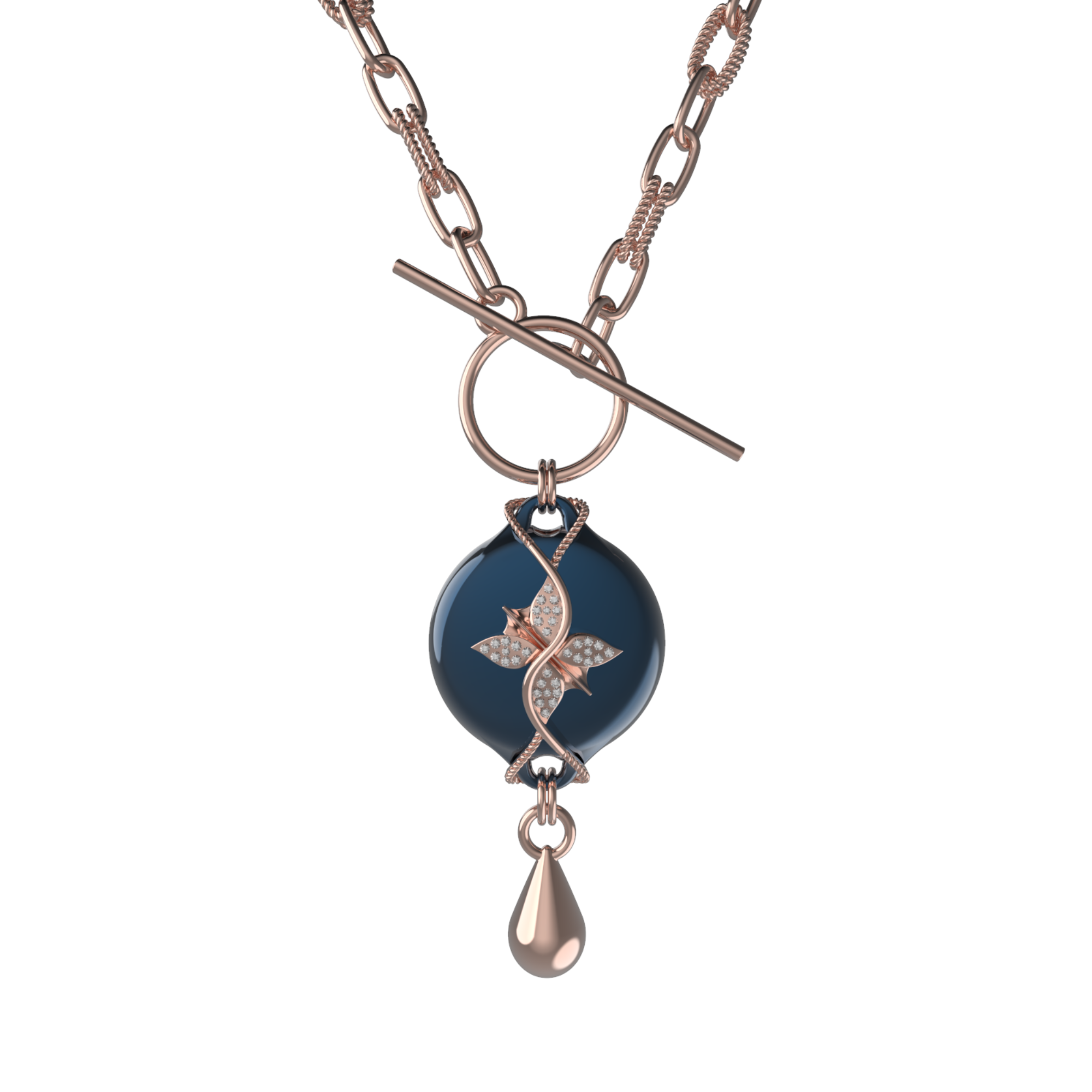 Mahi Safety Necklace - Rose Gold on Dark Blue (Murin), Wheat Chain
