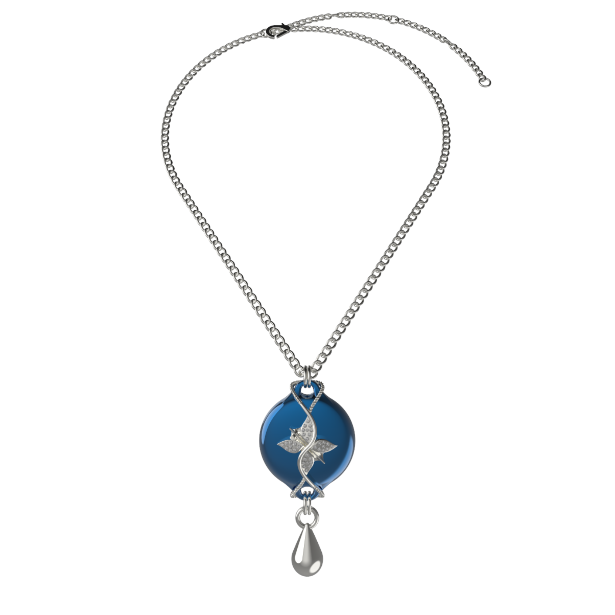 This design features the Wheat Chain in a silver finish, offering a softer, more fluid look. Adjustable for length, the chain allows the necklace to sit comfortably across different necklines, making it easy to style with both structured and flowing outfits. The deep blue accent adds depth and focus, while the silver tone keeps the overall look clean and contemporary.