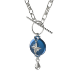 Mahi Safety Necklace - Silver on Blue, Paperclip Chain