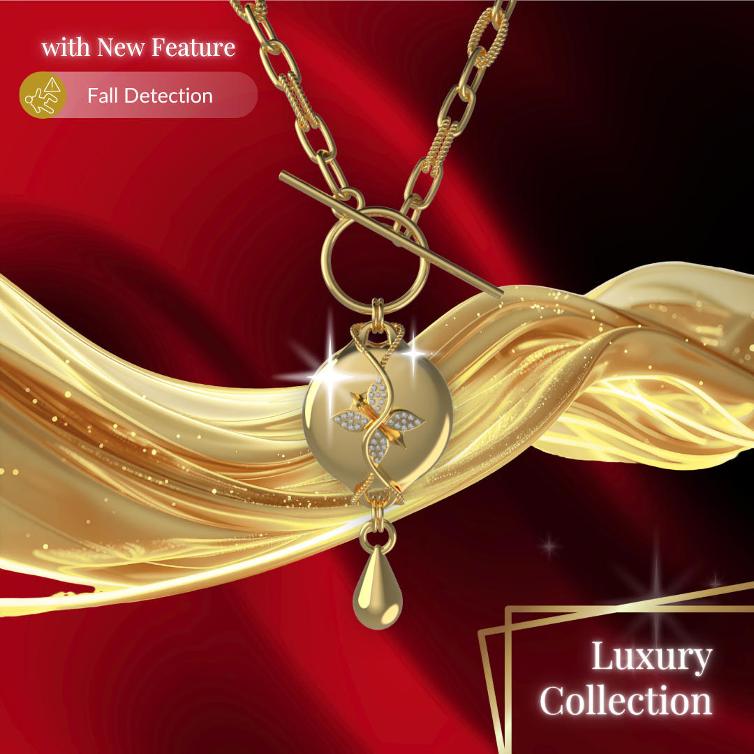 Mahi Safety Necklace - Gold on Gold, Paperclip Chain - V2 with Fall Detection