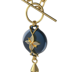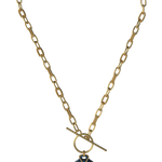 This design features the Paperclip Chain in a gold finish, offering a structured, modern look with a bold yet balanced presence. Its defined links add clarity and shape, making it a strong choice for tailored outfits, elevated evening looks, and clean silhouettes. The gold tone enhances the necklace’s warmth and elegance, while the dark blue centerpiece adds depth and visual interest.