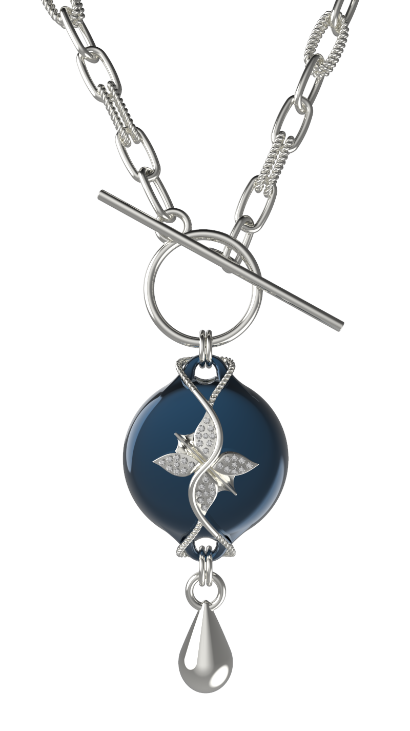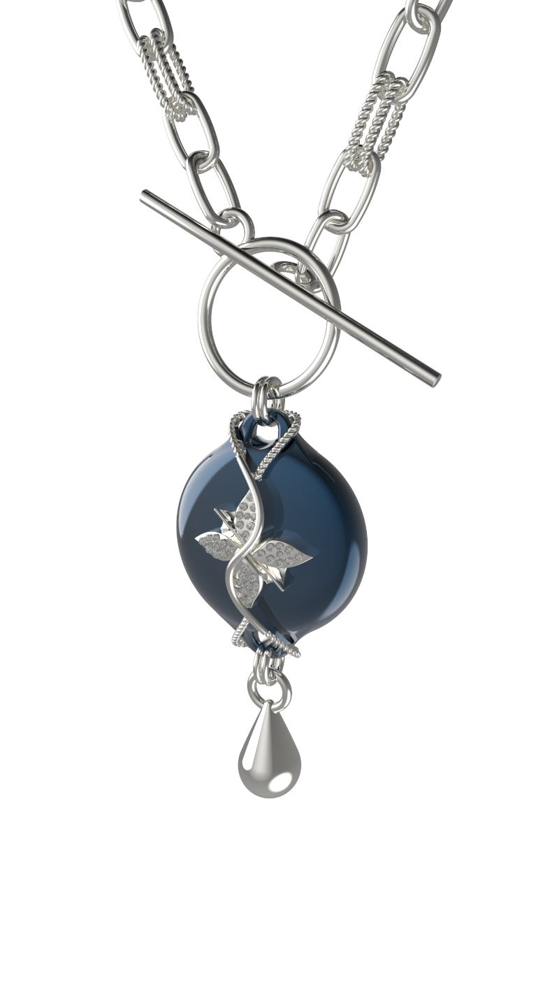 The Mahi Safety Necklace is designed for formal moments, without letting go of reassurance. This version pairs a luminous Muran centerpiece with a cool silver-tone finish, creating a refined contrast that feels polished and intentional. With a high-shine finish, sculptural form, and subtle rhinestone detailing, Mahi presents as fine jewelry suited for evening wear and dress-up occasions.