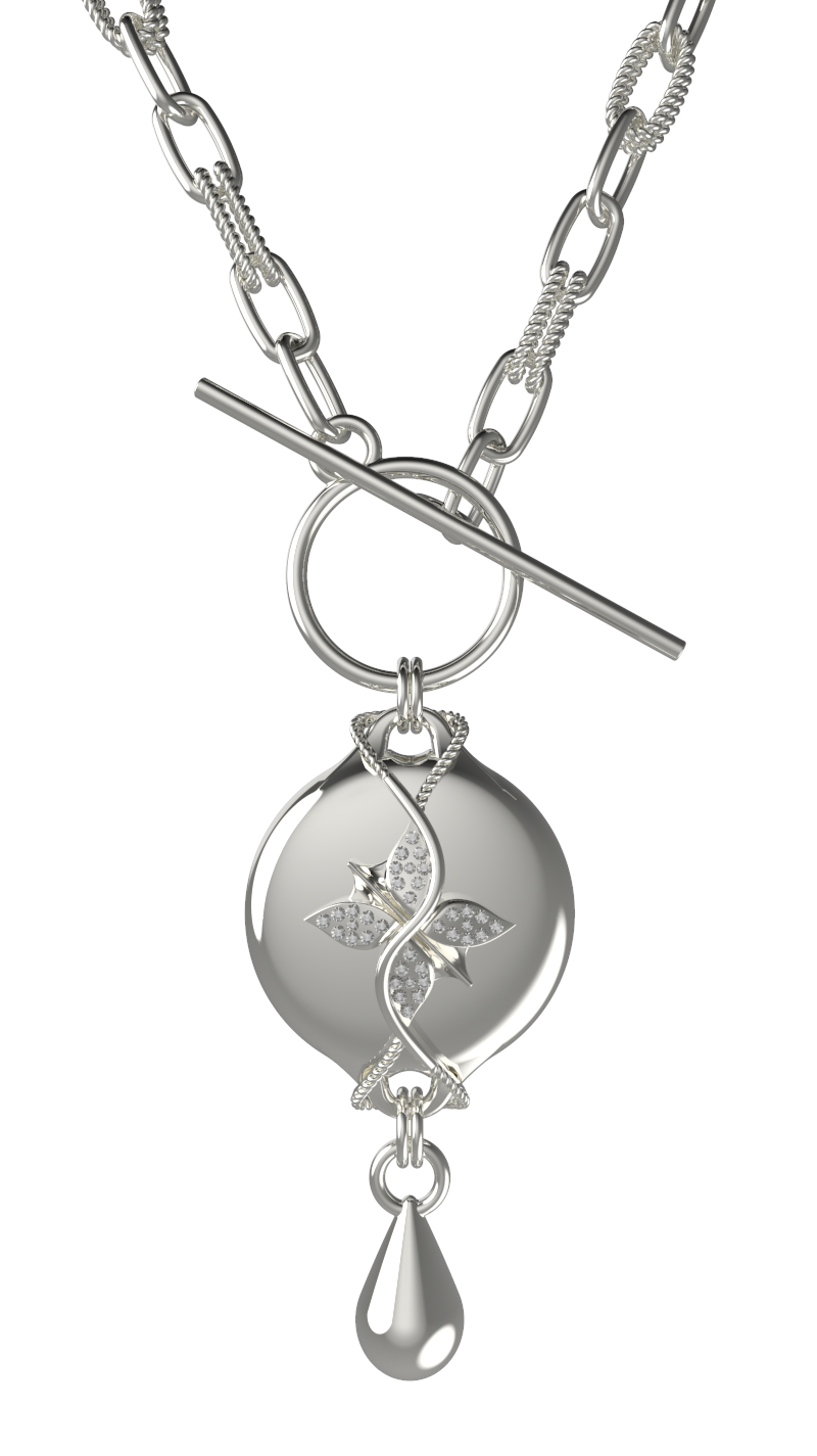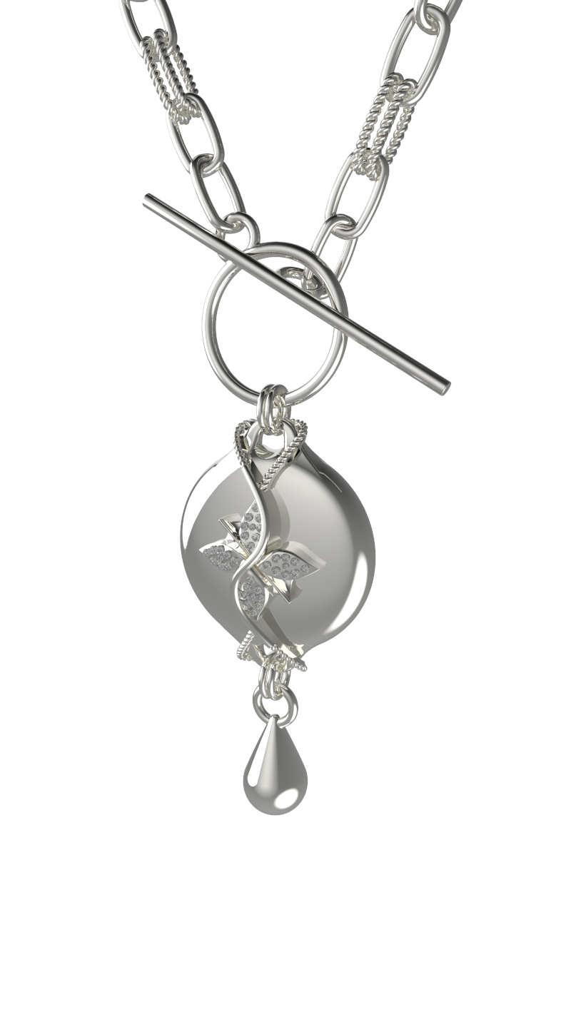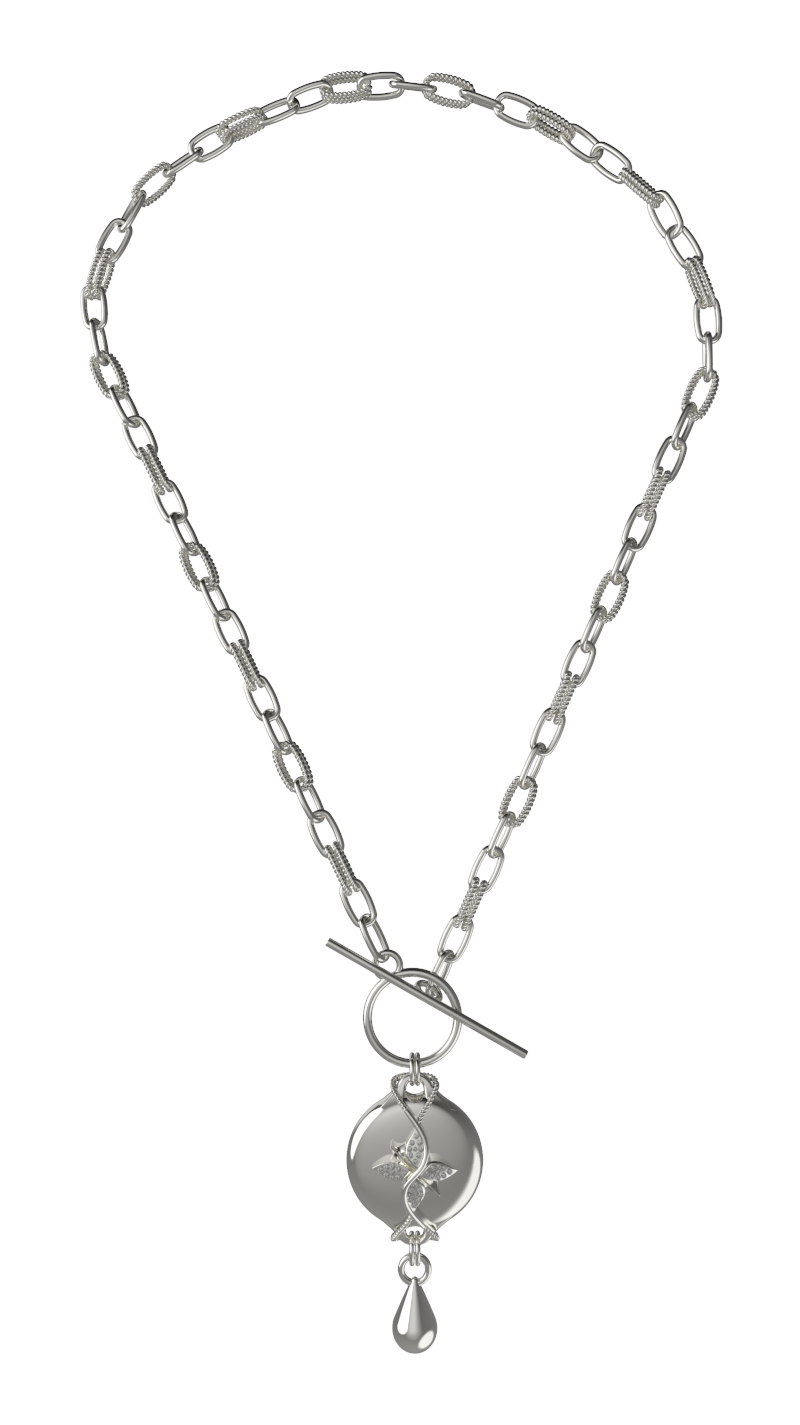 The Mahi Safety Necklace is designed for formal moments, without letting go of reassurance. This version pairs a luminous silver centerpiece with a matching silver-tone finish, creating a cohesive, refined look that feels polished and intentional. With a high-shine finish, sculptural form, and subtle rhinestone detailing, Mahi presents as fine jewelry suited for evening wear and dress-up occasions.