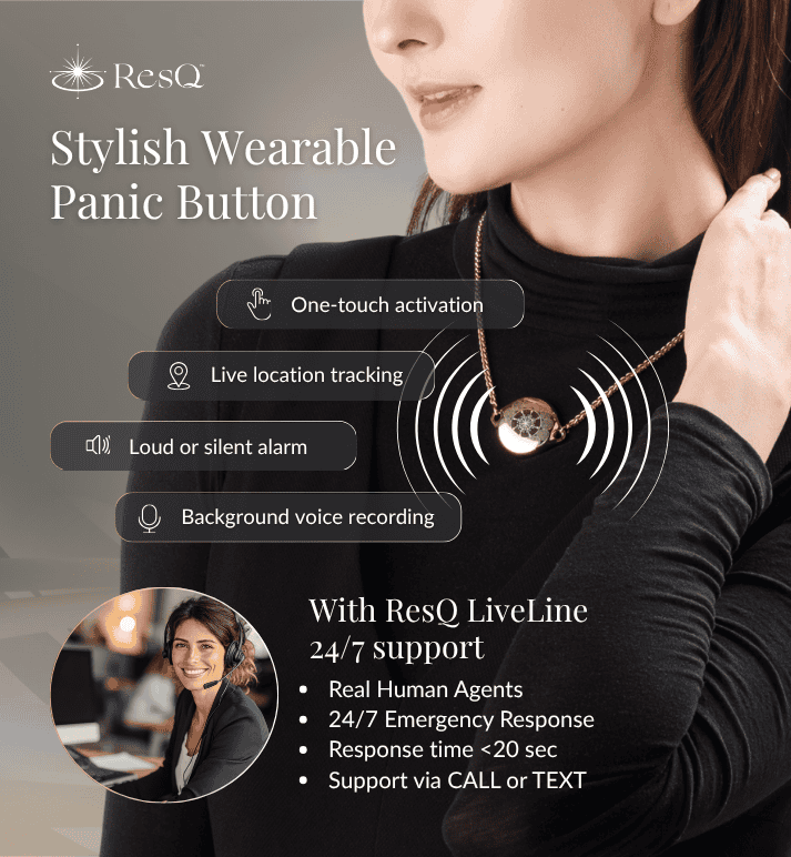 ResQ blends safety with sophistication. Designed to look like a chic piece of jewelry, it complements your style while keeping your peace of mind private. No flashing lights. No bulky tech. Just quiet confidence.
